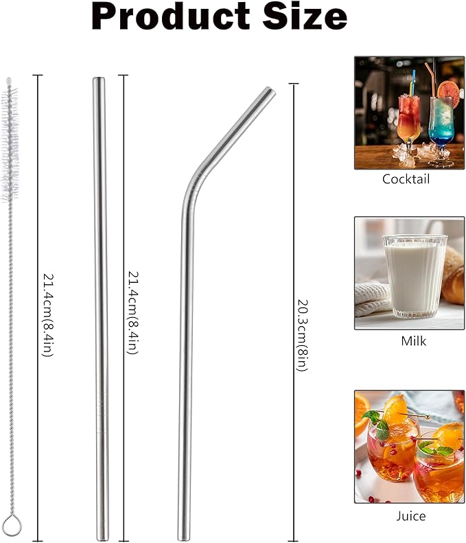 Eco-Friendly Reusable Straw Set – Drink in Style: Included in the set are 4 reusable stainless steel drinking straws (2 bent and 2 straight) and a cleaning brush for easy maintenance. Skip the disposable plastics and enjoy your coconut water, smoothies, or juices in a more sustainable and stylish way. The straws are also made of premium stainless steel—safe, durable, and environmentally friendly