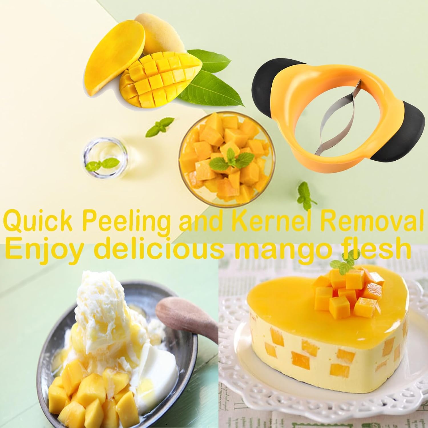 Mango Slicer,Mango Pit Remover Tool,Mango Cutter with Stainless Steel Blade With Rubberized Handle for Easy Coring(with 1*Fruit Fork+1*Opener)