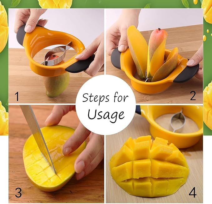 EASY TO USE: Mango pitter tool is faster to split mango than using traditional knife or similar tools. Place the mango on the table or counter and press. You can easily remove the mango kernel and cut it in half in a smooth motion
